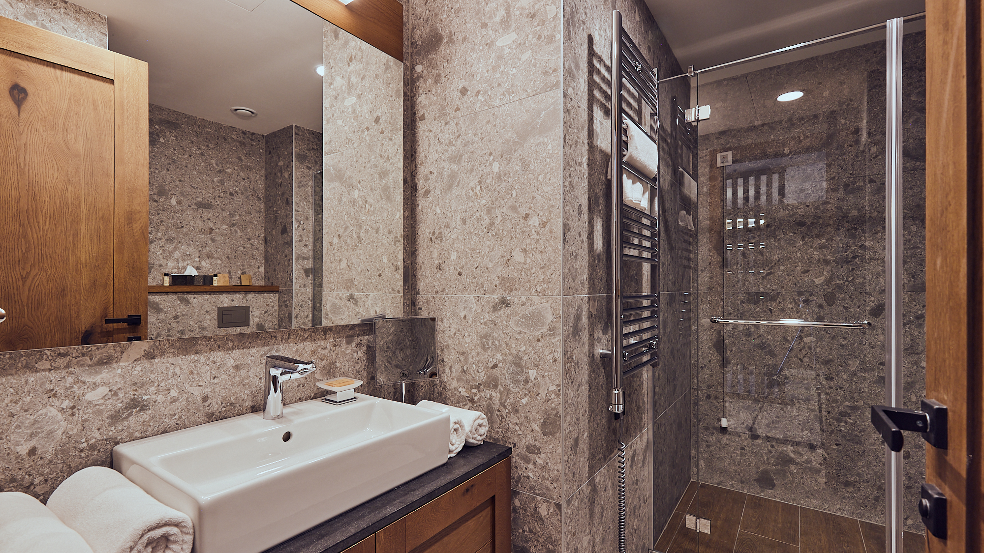 Ove smeštajne jedinice površine mogu biti površine 45 – 54.1 m2. U sklopu Deluxe Apartmana nalazi se odvojena spavaća soba sa francuskim ležajem, dnevna soba sa sofom i kupatilo sa tuš kabinom. Pojedine smeštajne jedinice poseduju i balkone.